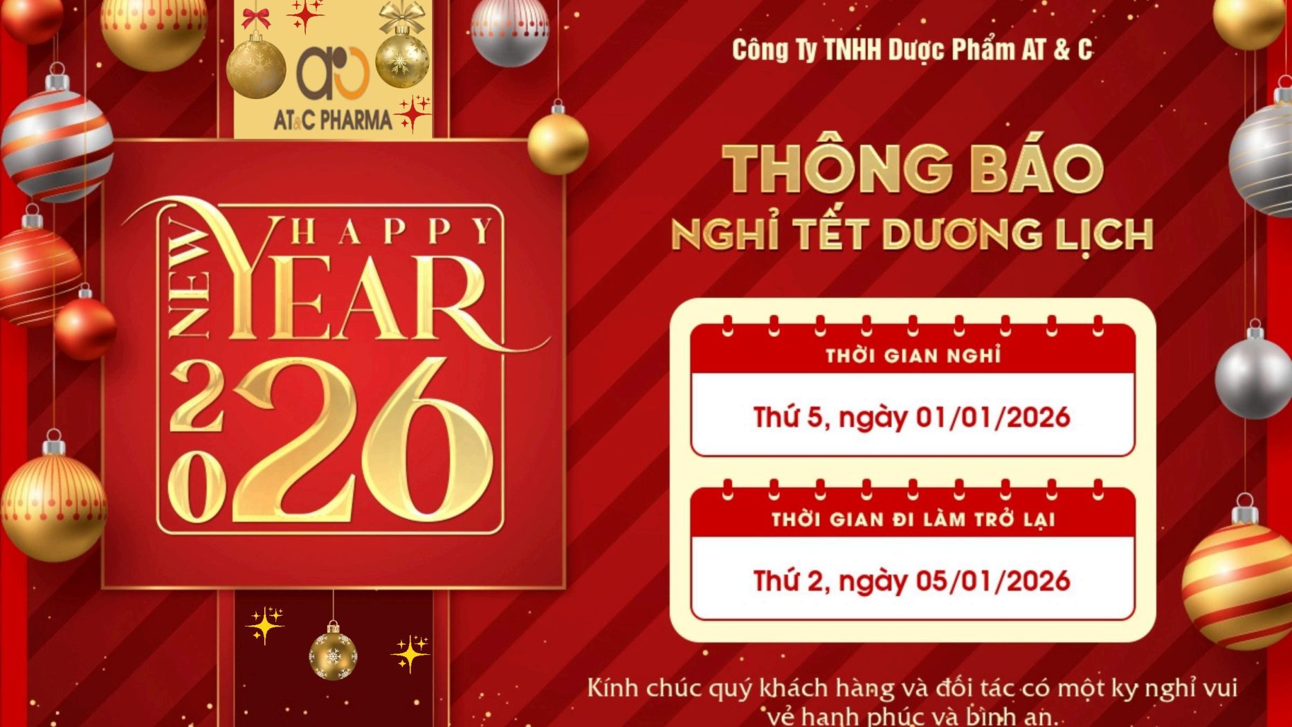 Công ty TNHH Dược phẩm AT&C được thành lập năm 2015 – là một trong những công ty dược phẩm hàng đầu Việt Nam chuyên kinh doanh Dược phẩm, thực phẩm chức năng, … gắn mình với sứ mệnh “chăm sóc sức khỏe cộng đồng thông qua các sản phẩm chất lượng, đạt chuẩn GSP, GDP,…”